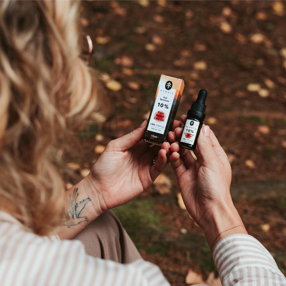 Aceite de cáñamo de amplio espectro con un 10% de CBG y un 5% de CBD, elaborado a partir de cáñamo cultivado de forma orgánica sin pesticidas ni herbicidas.